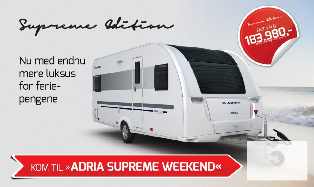 Vi har også fyldt vores lager op med en masse dejlige nye campingvogne fra Adria. Vi har modellerne Action, Aviva, Adora, Altea og Alpina i forskellige udførelser på lager. Så kig ind og lad os finde netop den som passer til jeres behov. |